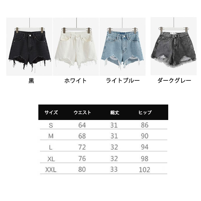 ■コメント ・クラッシュ加工がかっこいいデニムショートパンツ。 ・どんなトップスにも合わせやすいです。 ・スッキリとしたショート丈で美脚ラインをアピールできます。 ・トップスをインしやすいハイウエスト。 ・デイリー使いにはもちろん、ダンスやアウトドアなど気兼ねなくオシャレを楽しめるアイテム。 ■サイズ(単位:約cm) 画像に記載ありS(OK)M(OK)L(OK)XL(OK)XXL(OK) ※平置き採寸の為、1-3cmの誤差がある場合があります。予めご了承下さいませ。 ■カラー 画像に記載 ■裏地 なし ■生地の厚さ 普通 ■透け感 なし ■素材 コットン80%, ビスコース20%